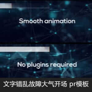 文字错乱信号故障大气开场 pr模板 【支持系统】Win/Mac 【支持软件】Premiere Pro CC 2018 或更高版本 【文件格式】prproj 【分 辨 率】FHD 1920×1080 【 插 件】无需任何插件 【压缩大小】54M...