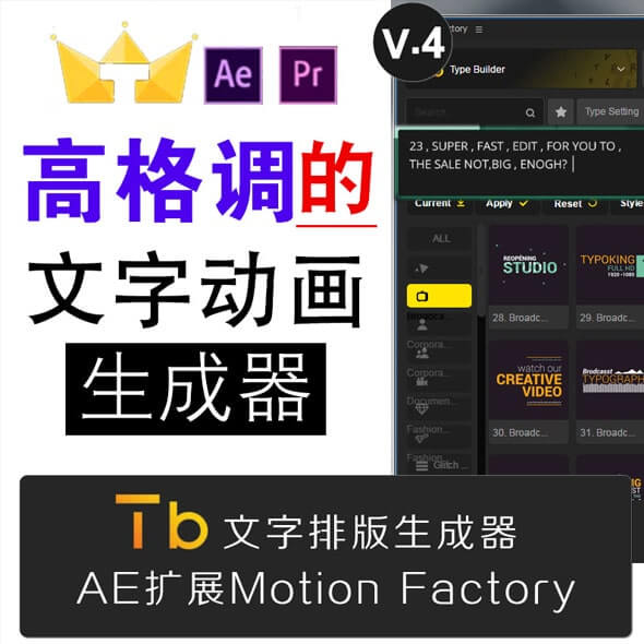 AE高格调的文字动画Motion Factory生成器 Pr预设字幕500组