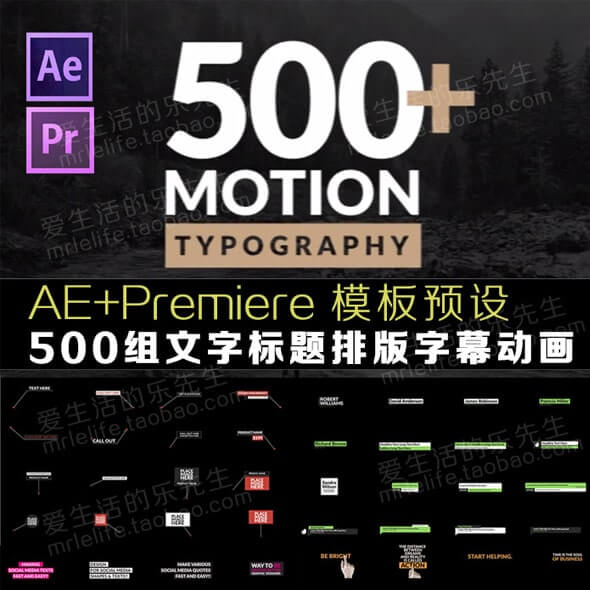 AE模板+Premiere基本图形预设-500组文字标题字幕动画