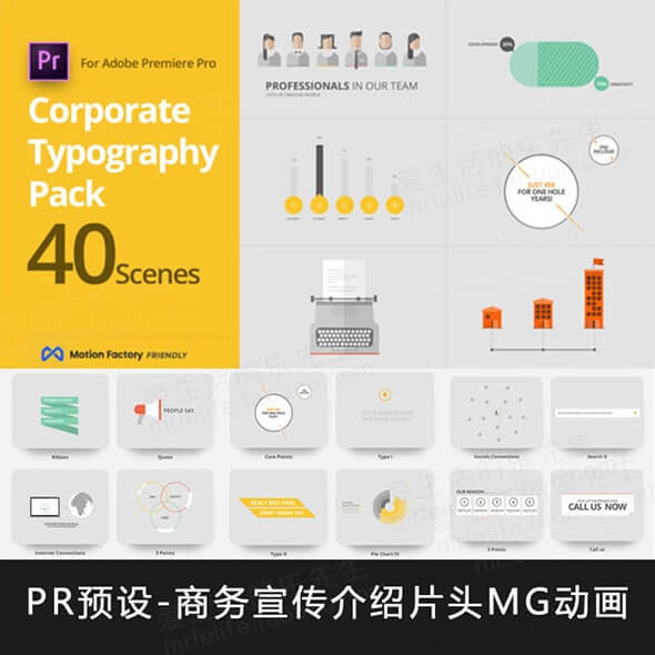 包含40个场景动画,文字颜色都可以修改,mogrt格式,需要PR CC 2017.2或者更高版本