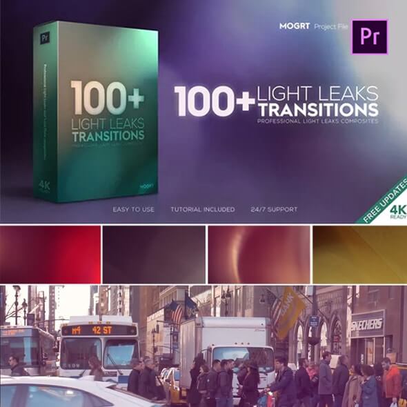 Pr基本图形预设:101个镜头耀斑漏光转场特效