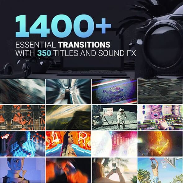 AE模板-1400组摄像机移动图形切割扭曲信号损坏笔刷水墨视频转场