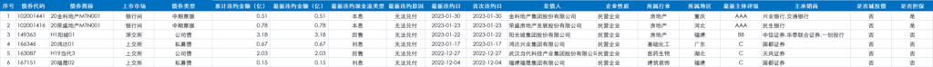 包含信息:序号 债券代码 债券简称 上市市场 债券类型 累计违约金额(亿) 最新违约金额(亿) 最新违约现金流类型 最新违约原因 最新违约日 首次违约日 发债人 企业性质 所属行业 所属地区 最新主体评级 主承销商 是否城投债 是否担保
