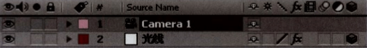 08 下面需要复制多个环形出来,而目前的“光线”层太大,需要将镜头推得远一些。单击“光线”层右侧的三维层按钮,将“光线”层转换为三维层,如图所示。