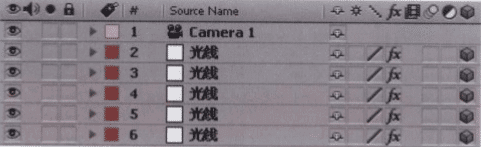 11 选中“光线”层,按下Ctrl+D组合键,将“光线”层复制4份,如图所示。