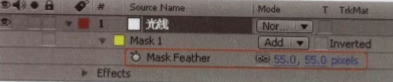 按F键展开Mask Feather参数,并设置其值为(55.0, 55.0) ,如图所示。