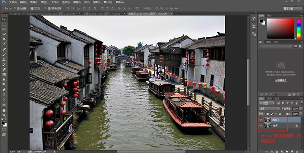 步骤5:再次复制背景图得到图层2,然后ctrl+shift+alt+E置顶图层2,接下来的操作是为了加强水墨效果的轮廓显示更为清晰。(如图5所示)