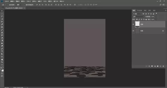 1、首先打开新建对话框,创建一个210毫米X297毫米、300像素/英寸的文档,设置前景色为深灰色#5c5656,按下快捷键Alt+Delete填充前景色,然后把地面素材拖入文档中: