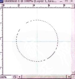 02 新建一个图层,按Ctrl+R键显示标尺,找到图像文件的中心点定位,按住Alt键的同时使用圆形选择工具拖出一个大小适当的圆,如下图所示。
