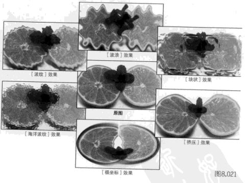 通过将选区折成球形、扭曲图像及伸展图像以适合选中的曲线,使对象具有3D效果,如图8.02所示。