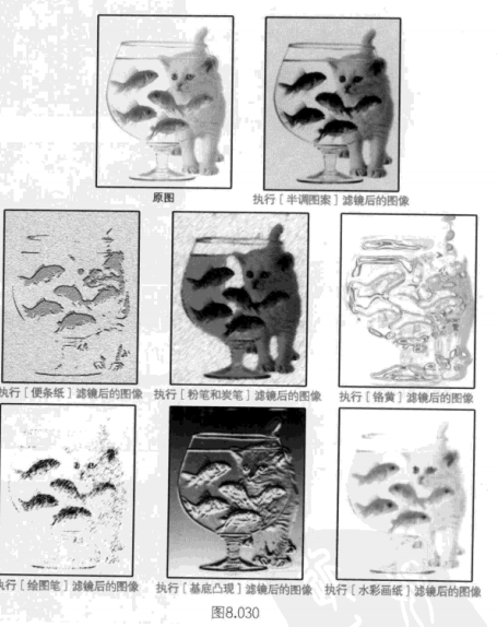 简化了图像,使之看起来像是用橡皮或木制图章创建的一样,效果如图8.031所示。