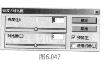 执行[图像>调整>亮度/对比度]菜单命令或者执行[图层>新建调整图层>亮度/对比度]菜单命令,都可以打开[亮度/对比度]对话框,如图6.047所示。