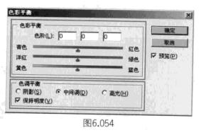 [图层>新建调整图层>色彩平衡]菜单命令,都可以打色彩衡]对话框,如图6.054所示。