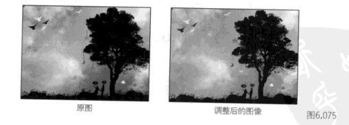 使用[通道混合器]命令,可以创建高品质的灰度图像、棕褐色调图像或其他色调图像,也可以通过混合不同通道的颜色对图像进行创造性的颜色调整,效果如图6.075所示。
