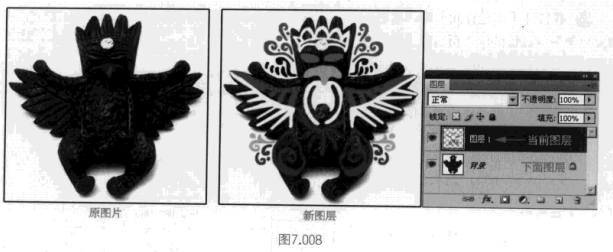 这里,我们准备了原稿图片,在原图片的基础上新建了“图层1”,作为与原图进行不同混合的图片,如图7.008所示。
