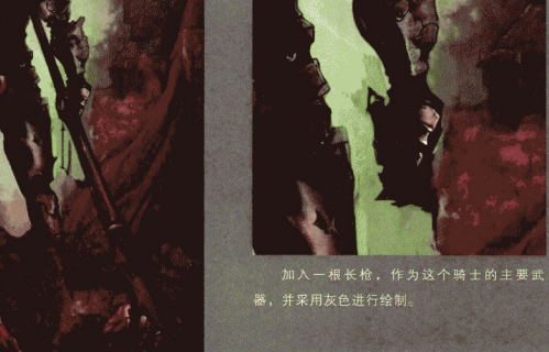 细化枪头的部分。配合石头的感觉,加入血迹,如下图所示。