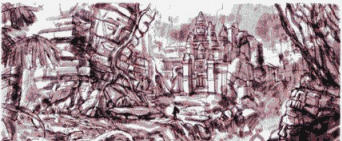 添加一个人物来确定比例关系,这里可以看到人物很小,这是为了与夸张的巨大石像和周围生长千年的原始丛林来作对比,如下图所示。
