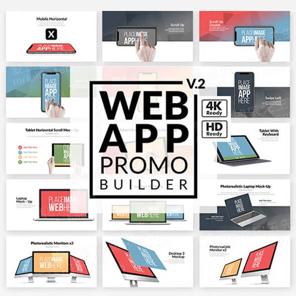 80组结构良好的模块化预制动画场景,多种流行设备 iMac,iPad,iPhone 6,iPhone X,MacBook 等外观模型;11种触摸手势 (Alpha 通道);4K超清分辨率 (3840×2160);通用表达式,支持中英文或任何语言的AE软件。