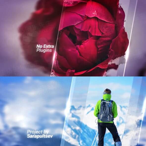 透明玻璃质感照片幻灯开场Pr模板