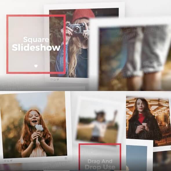 优雅方框视频 照片漂浮幻灯片PR模板