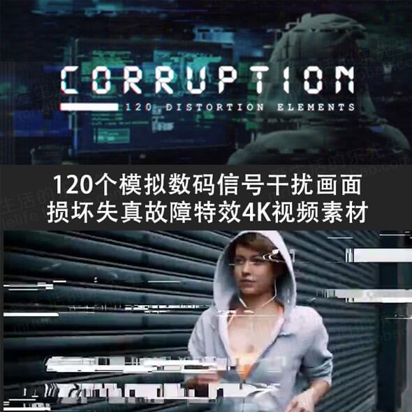 120个模拟数码信号干扰画面损坏失真故障特效4K视频素材