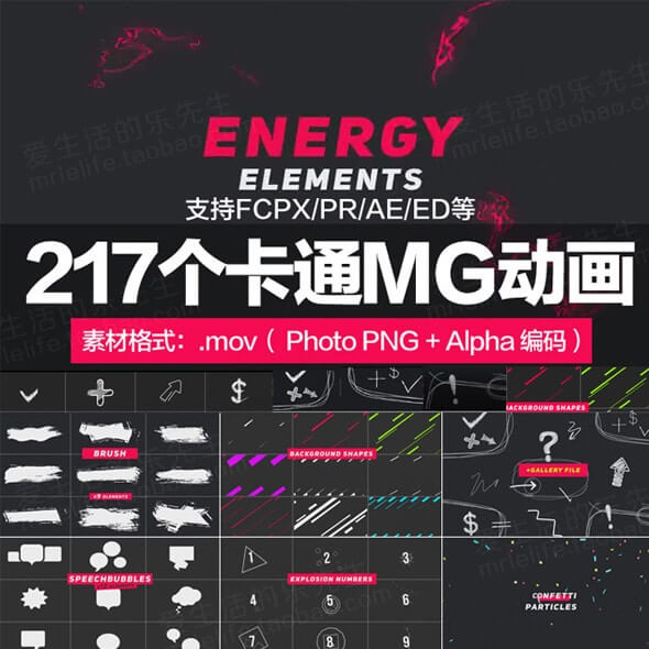 共14类(217个)二维卡通MG小元素图形动画叠加高清视频素材,分辨率:1920×1080,有透明通道,直接导入软件使用,可多种动画叠加,
