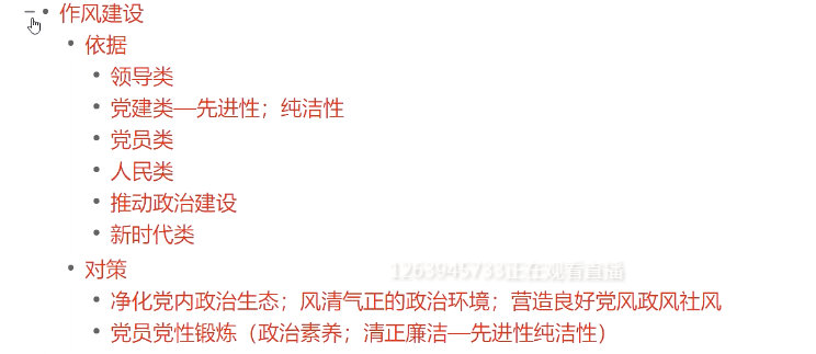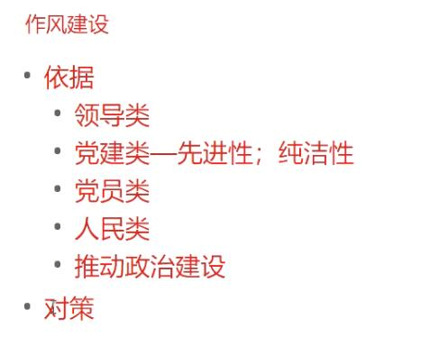 - 政治建设 思想建设 组织建设 作风建设 反腐倡廉 。。。