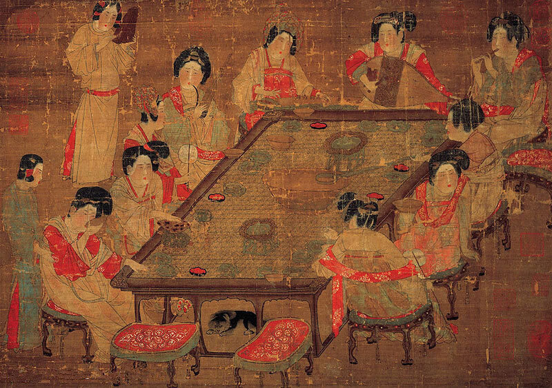 唐代仕女画以其端庄华丽,雍容典雅著称,其中最杰出的代表莫过于张萱的《虢国夫人游春图》、《捣练图》和周昉的《簪花仕女图》、《挥扇仕女图》以及晚唐的《宫乐图》。