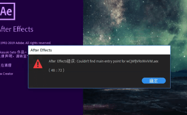 安装插件合集后,打开AE弹出错误After Effects错误:Couldn’t find main entry point for xxxxxxxx.aex (48::72)