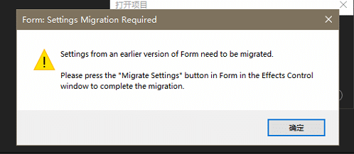 安装完插件合集打开模板依然报错,Form Settings Migration Required.Settins from an earlier version of Form need to be migrated,Please press the “Migrate Settings” button in Form in the Effects Control window to complete the migration.