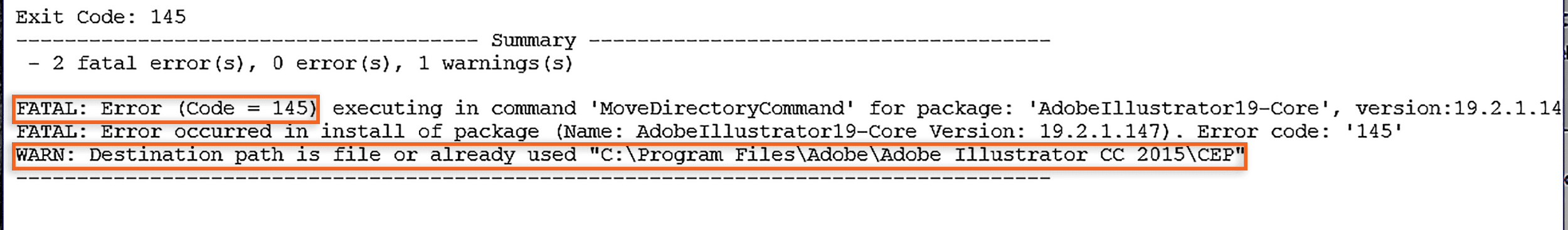 | 145、C145 | 文件已在安装路径中。 | 请重命名/删除文件,然后重试。要获取有关文件的信息,请参阅更多信息。 |